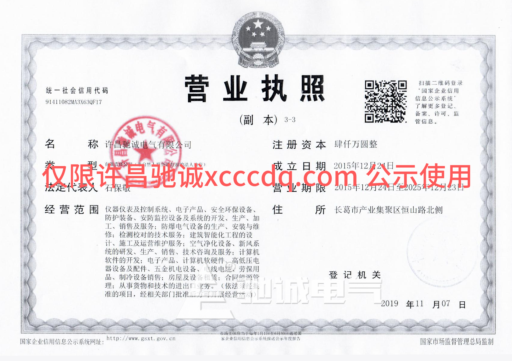 许昌驰诚电气有限公司(以下简称“许昌驰诚”)是河南驰诚电气股份有限公司(以下简称“河南驰诚”或“母公司”)的全资子公司,成立于2015年12月24日,注册资本2000万元。